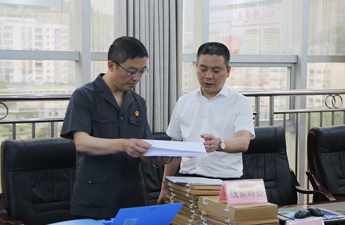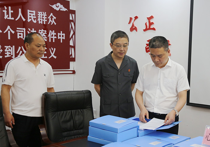5月13日,县委常委、县纪委书记、县监委主任李斌一行到南江县人民法院调研指导政法队伍教育整顿工作,县人民法院党组书记、院长何科陪同调研。
